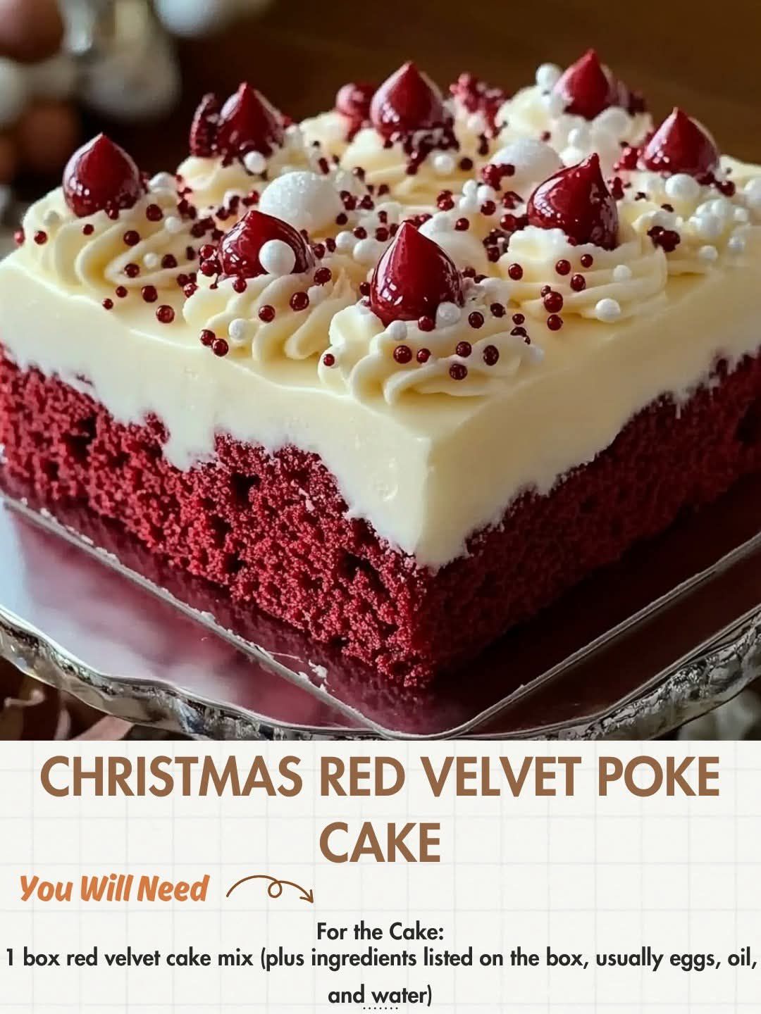 This Christmas Red Velvet Poke Cake transforms a classic holiday flavor into a rich, beautifully soaked dessert that’s perfect for festive gatherings. The warm red velvet base is infused with a luscious mixture of sweetened condensed milk and melted white chocolate, creating a moist, decadent texture in every bite. Topped with a cloud-like cream cheese whipped topping and finished with holiday sprinkles, this cake is as eye-catching as it is delicious. The poke-and-pour technique ensures deep flavor throughout while keeping the process easy and approachable for any home baker.