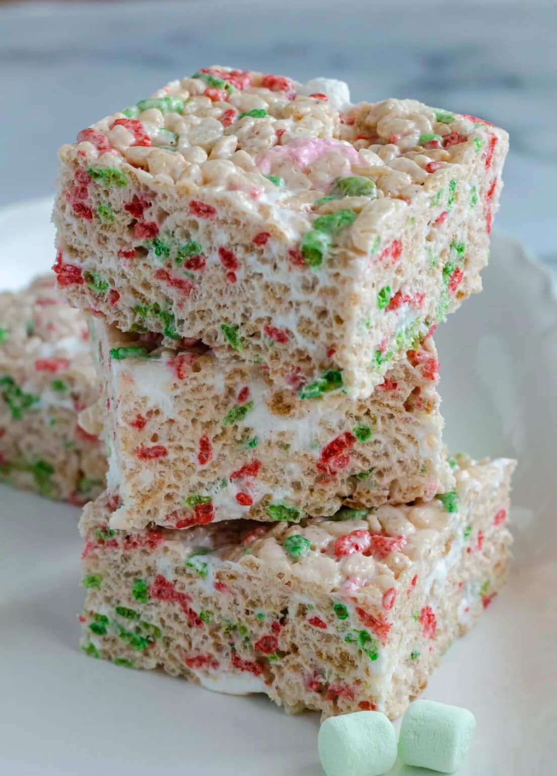 I guarantee these Christmas Rice Krispie squares will make a perfect, easy, and fun addition to your holiday baking!