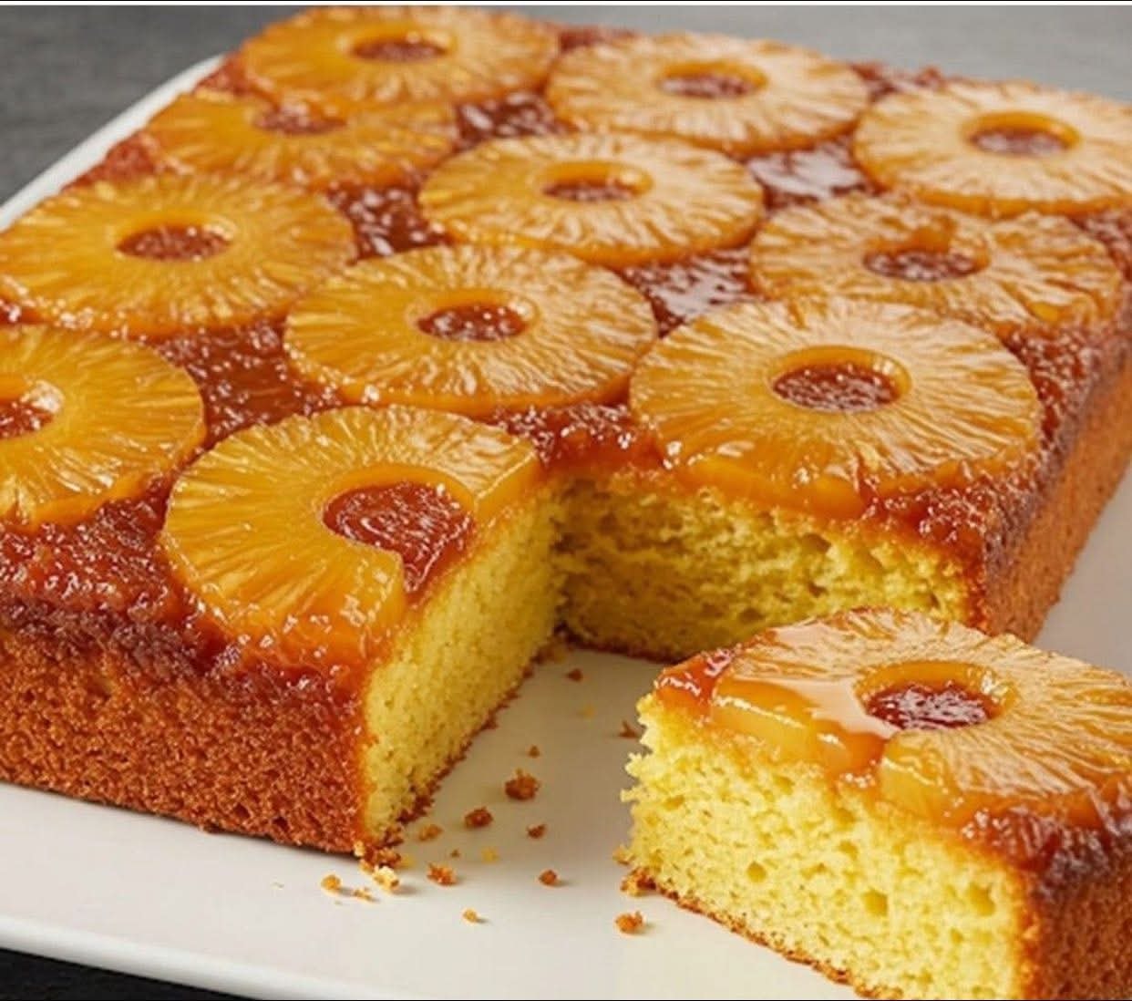 This version is baked in a square pan, creating evenly sized portions and a generous topping-to-cake ratio. The pineapple juice folded into the batter enhances moisture and flavor, while the butter and brown sugar melt together to form a luscious caramel layer beneath the fruit. It’s perfect for family gatherings, potlucks, or anytime you want a dessert that feels both classic and special.