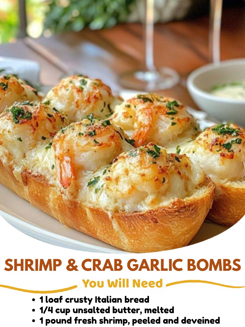 These Crabby Shrimp-Stuffed Garlic Bread Bombs bring together buttery garlic bread and a creamy seafood filling for an irresistible appetizer or main course. Each piece is loaded with tender shrimp, sweet crab, and melted cheese, all encased in warm, golden bread that’s crisp on the outside and soft within. Perfect for parties, game nights, or an indulgent seafood feast.