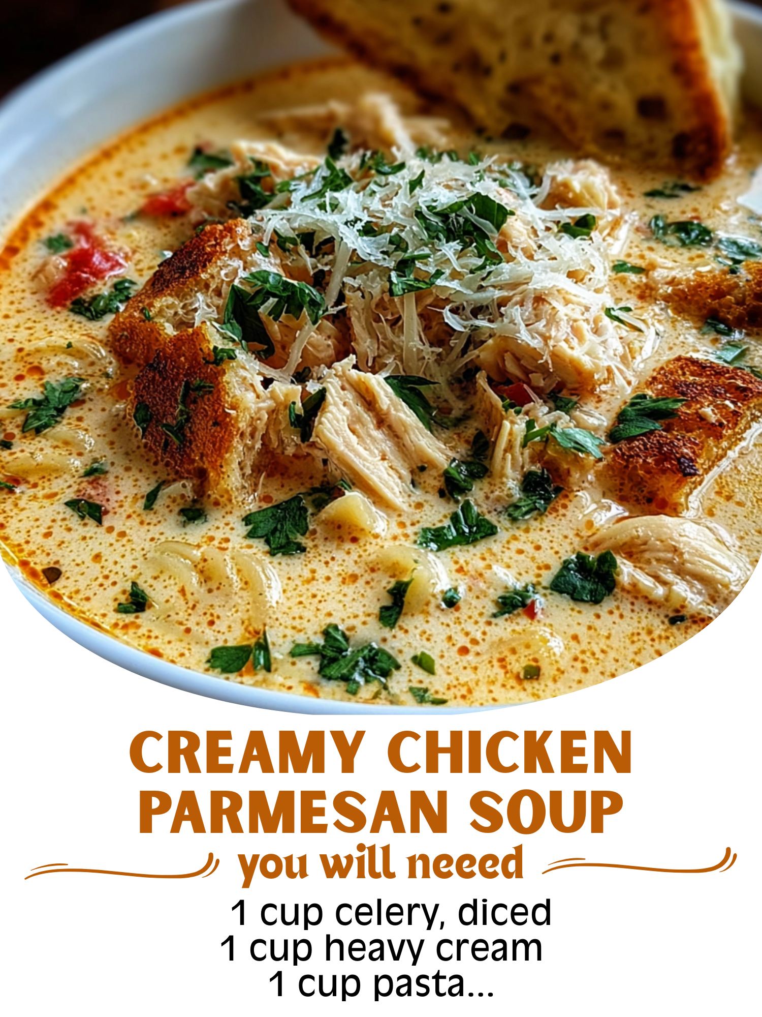 🍗🧀 Rich, savory, and pure comfort — this Creamy Chicken Parmesan Soup brings all the cozy flavors of classic chicken parmesan in a warm, creamy bowl. Loaded with tender chicken, hearty vegetables, pasta, and a touch of Parmesan, it’s the perfect comfort food for any day of the week. Pair it with garlic bread for the ultimate cozy meal!