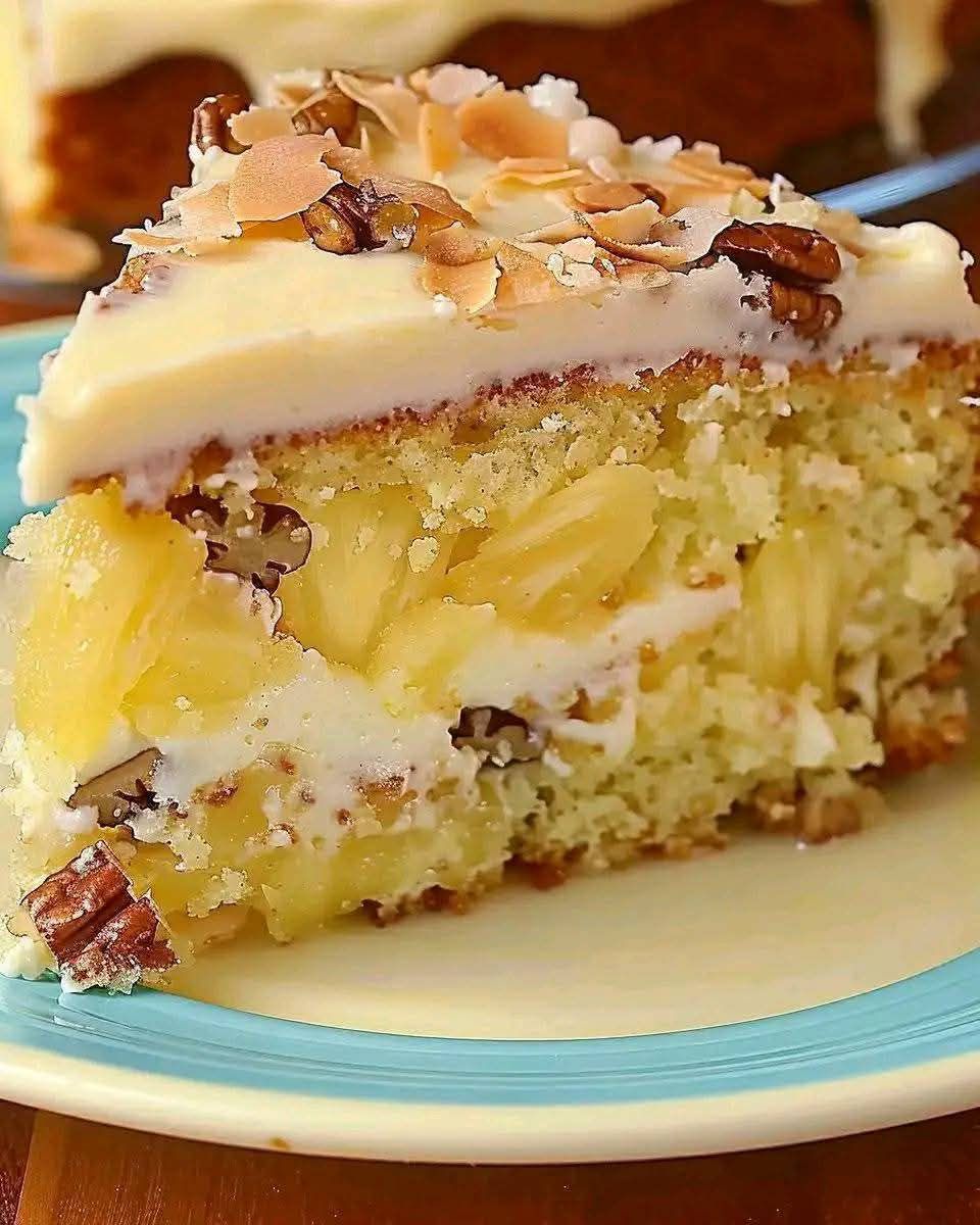 This Hawaiian Pineapple Cake is a tropical delight packed with juicy pineapple, tender coconut, and a creamy frosting that brings the islands to your plate. Each bite is moist, rich, and bursting with sweet, fruity flavor. Finished with a luscious cream cheese frosting and a sprinkle of pecans and coconut, this cake is perfect for summer parties, potlucks, or when you just want a taste of paradise. 🍍