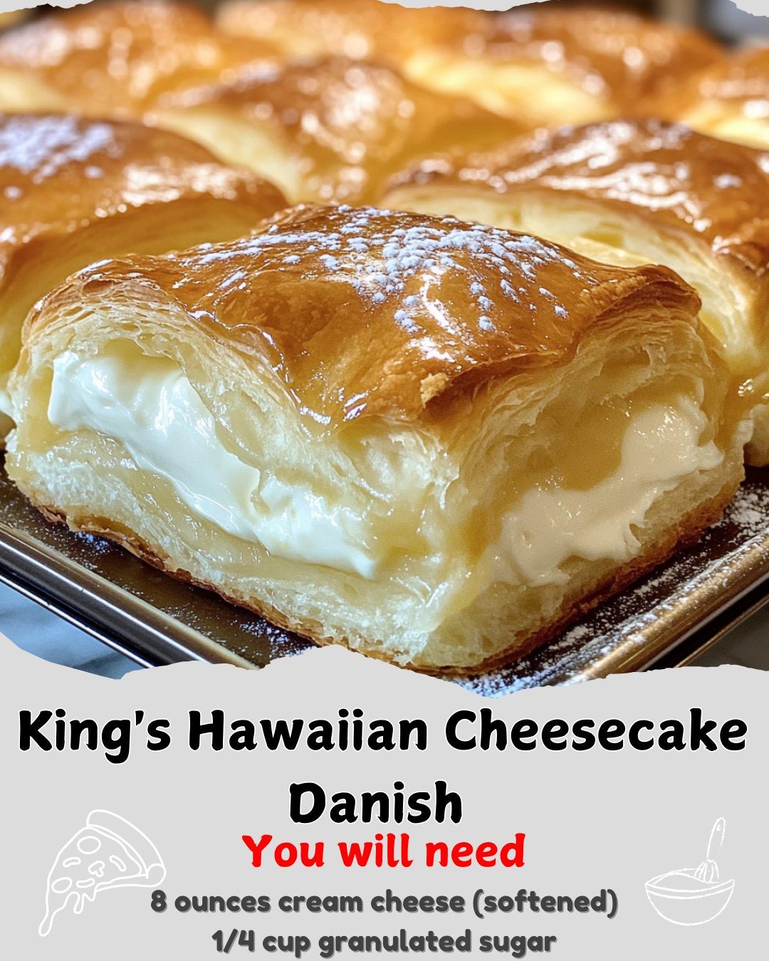This King’s Hawaiian Cheesecake Danish is a sweet and indulgent breakfast or dessert that combines the soft, sweet rolls of King’s Hawaiian with a creamy cheesecake filling and a sugary glaze. With just a few simple ingredients, you can create a delicious treat that everyone will love. Perfect for brunch, a family gathering, or any occasion that calls for a little extra sweetness!