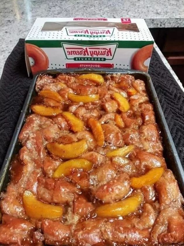 This Krispy Kreme Peach Cobbler is an indulgent twist on a Southern classic, made even more irresistible with chunks of glazed doughnuts soaked in a rich custard. Paired with spiced peaches and baked to perfection, it’s the ultimate comfort dessert for any occasion. Warm, gooey, buttery, and just sweet enough—it’s cobbler like you’ve never had before!