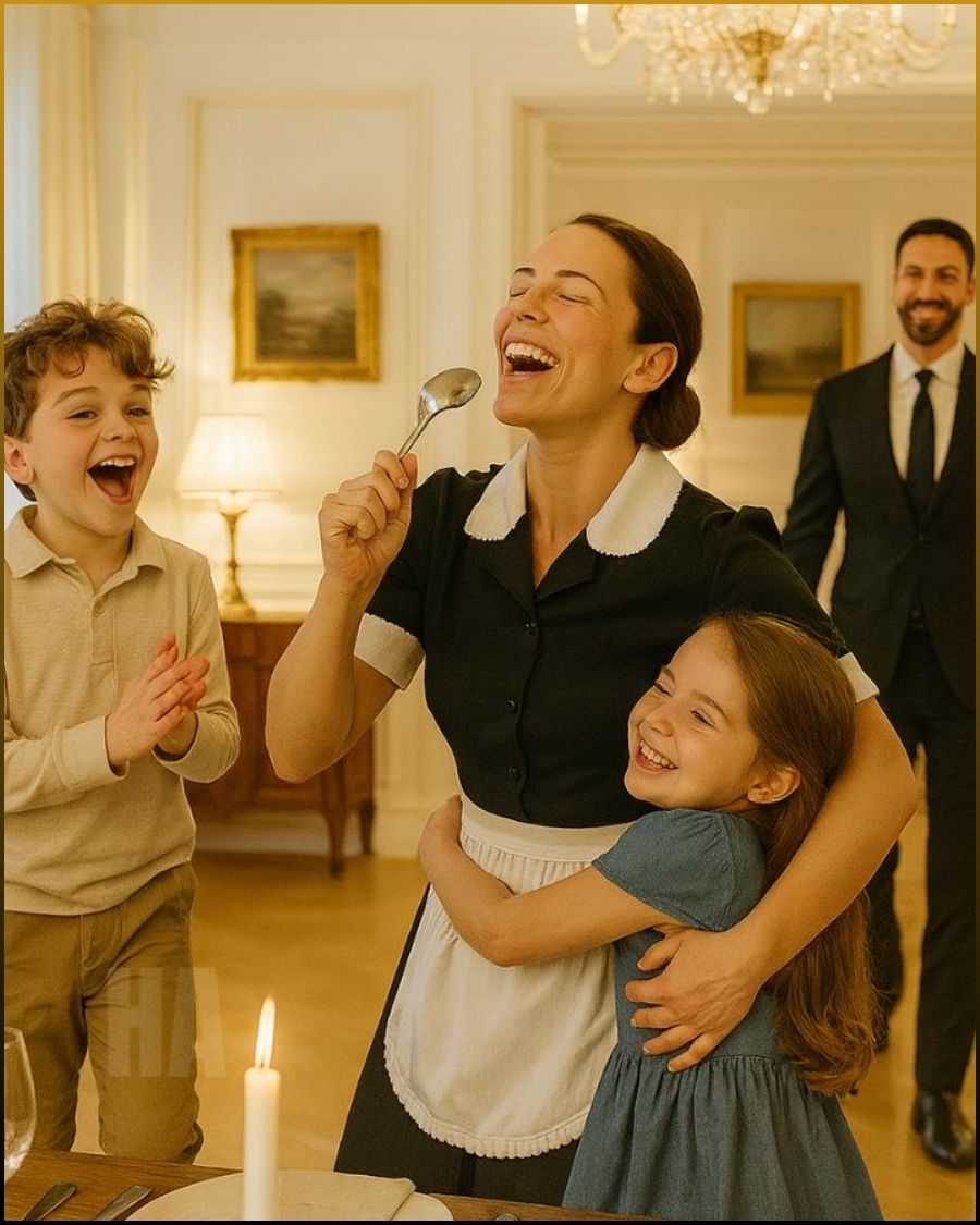 That afternoon, Adrian’s car rolled quietly up the driveway. The sun was still high, its golden light spilling across the marble steps of the mansion. As he entered, expecting silence or the faint murmur of cleaning, he froze. From the grand dining room came laughter — real, vibrant laughter, the kind that hadn’t echoed in his house for years.
