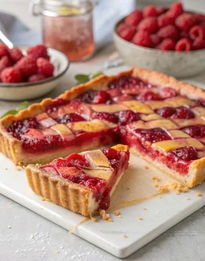 π Raspberry Rhubarb Slab Pie with Buttery Crust πΏπ₯§