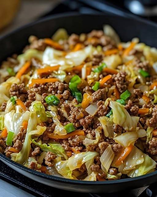 This Savory Chinese-Style Ground Beef & Cabbage Skillet is a quick, healthy, and flavorful meal packed with protein, veggies, and a delicious blend of savory and tangy flavors. The lean ground beef is perfectly seasoned and stir-fried with cabbage and carrots, making it a satisfying meal that’s perfect for a weeknight dinner or meal prep!
