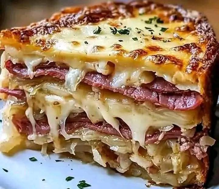 This Savory Reuben Bake brings the classic flavors of a Reuben sandwich into a warm, cheesy, and comforting casserole. With layers of rye bread, corned beef, sauerkraut, Swiss cheese, and Thousand Island dressing, it’s a hearty, crowd-pleasing meal perfect for family dinners or gatherings.