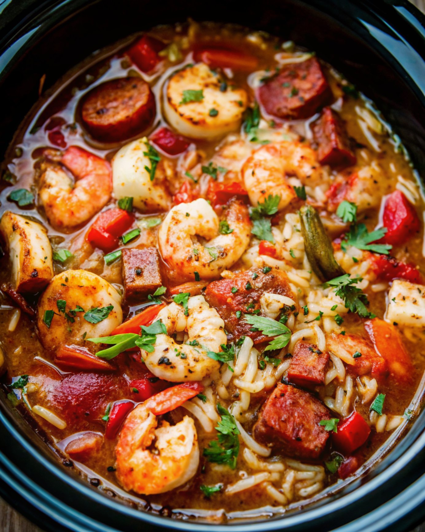 Bold, spicy, and full of flavor, this Slow Cooker Cajun Jambalaya is packed with chicken, andouille sausage, and shrimp simmered in a rich tomato Cajun broth. Just dump and go!
