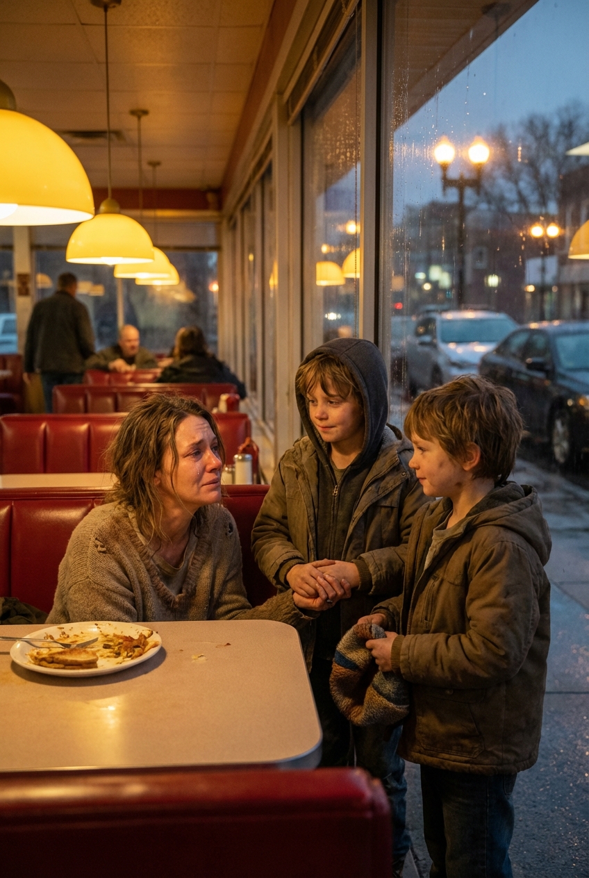 I had just wrapped up a draining business meeting, the kind that leaves your mind heavy and your soul tired, when I noticed two boys hovering near the entrance of the diner. They didn’t rush, didn’t push, didn’t act like trouble. They simply stood there, as though gathering courage, as though deciding whether the world might be kind for once. When they finally approached my table, one of them—maybe twelve or thirteen—spoke with a softness that didn’t belong in a child who had clearly seen too much.
